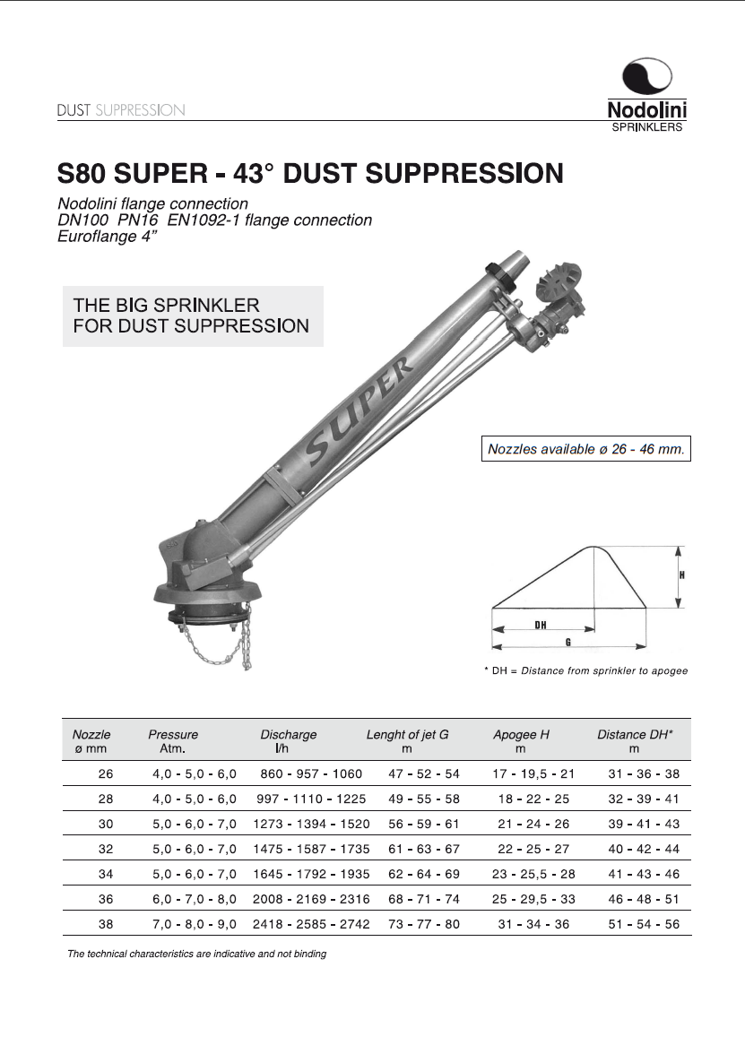 | Product / Type | Nodolini S80 SUPER - 43° DUST SUPPRESSION |