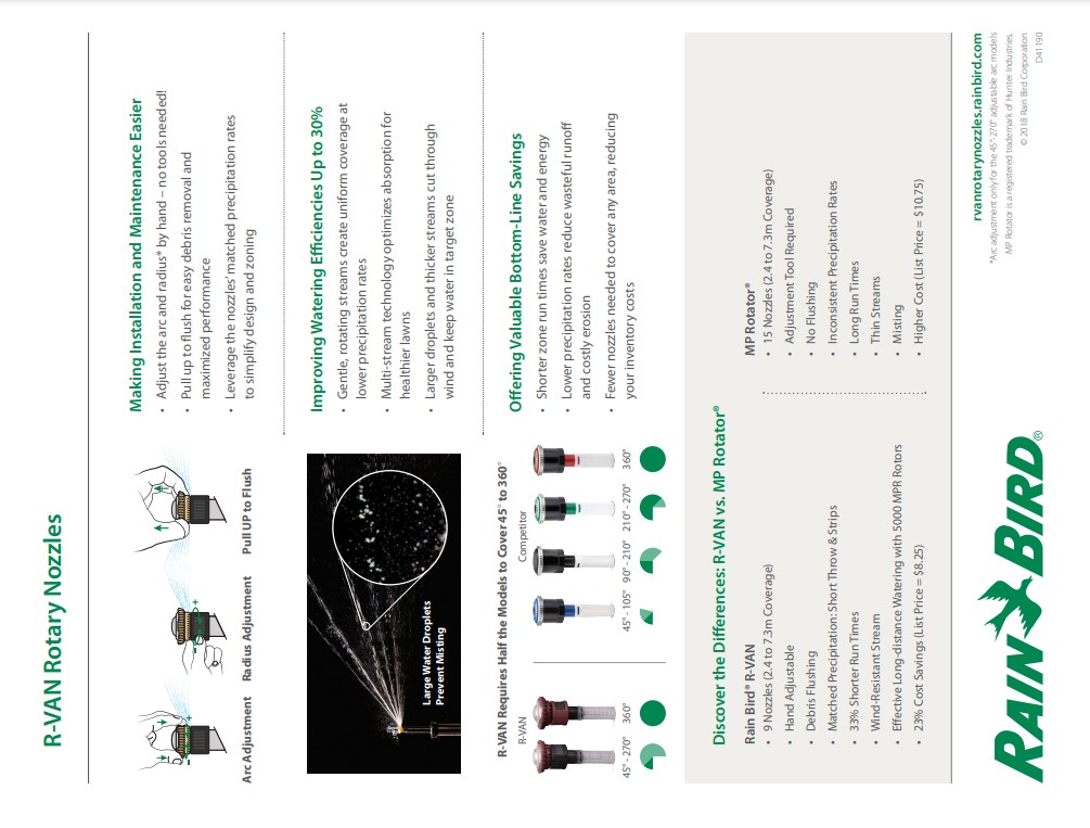 RainBird Serie R-VAN Nozzles voor Spray Pop-Up Type 1800 Telescoopsproeiers