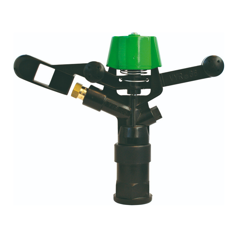 VYR-36-AF kunststof nachtvorst rondsproeier, 3/4" bi.dr., groene of zwarte beschermkap, kunststof hoofdnozzle 4,4 mm & achternozzle 2,4 mm