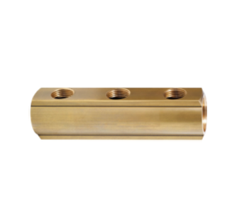 Messing collector - No. 0081, 1 1/4" - 2 x bi.dr. met 3 aansluitingen 1/2" bi.dr.