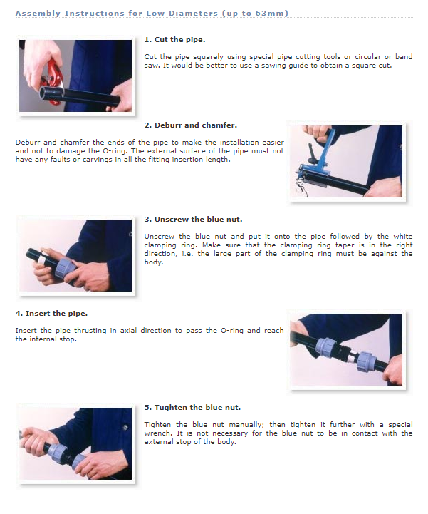 Zijn leverbaar in de diameter 16 t/m 110 mm voor het verbinden van LDPE, MDPE en HDPE (in de volksmond genoemd Tyleen buizen).[/br]