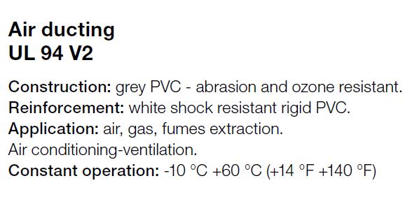 | Toepassing (slang) | Afzuigslang voor lucht, gas, rook. Airco en ventilatie toepassin |