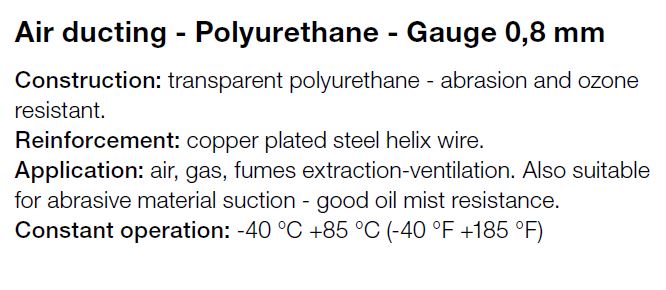 | Binnenwand slang | Polyurethaan afzuigslang - graad 0,8mm |