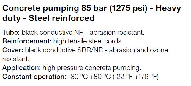 Alfagomma, Beton persslang 85 bar - type 740AA, zware toepassingen - Stalen inlagen, 63 x 85 mm - 2 1/2", afname per volle rol, 2,9 mtr.