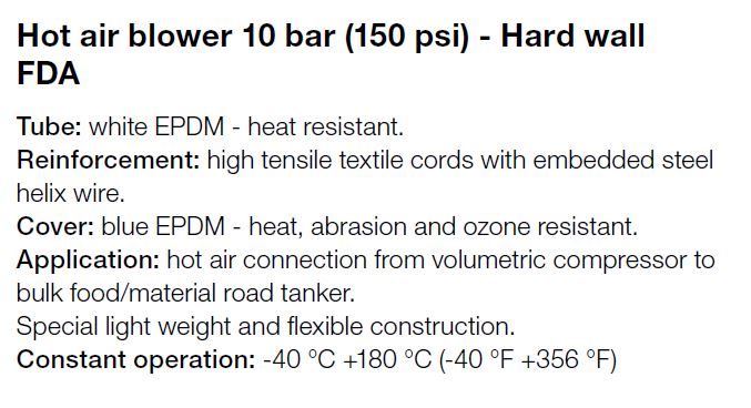 Alfagomma, Hete luchtslang -FDA, Textielinlagen met ingewerkte stalen spiraal - 10 bar, 76 x 90 mm - 3", afname per volle rol, 61 mtr., type 903LE