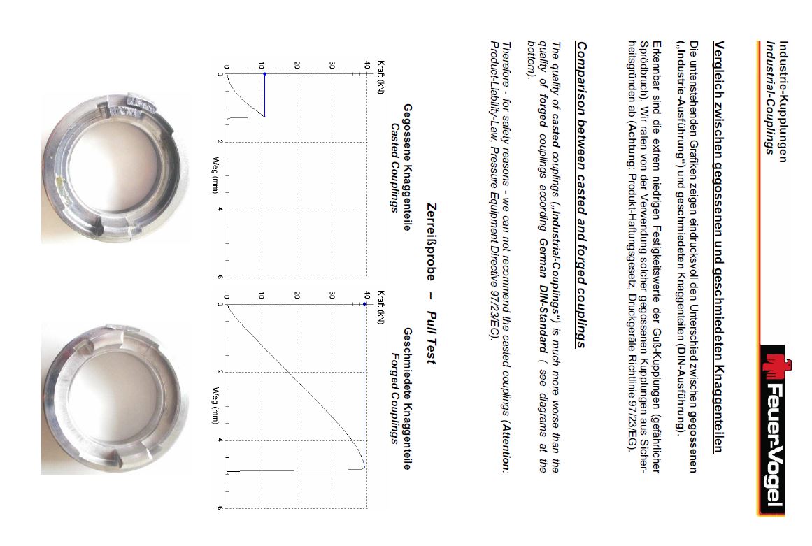 Feuer Vogel Storz koppelingen onderscheiden zich ten opzichte van imitatie koppelingen door de uitermate hoge trekkracht en nauwkeurige maatvoering / passing ten opzichte van gegoten koppelingen.[/br]