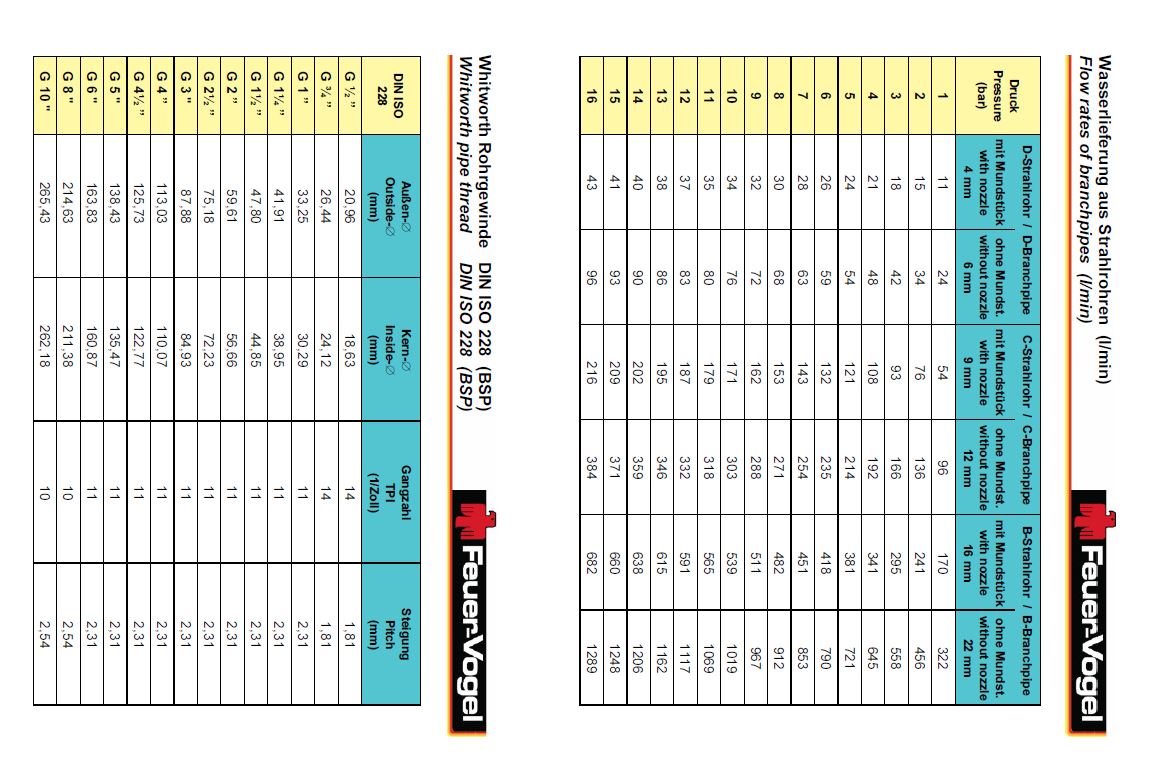 Feuer Vogel produceert een compleet pakket koppelingen, standpijpen / hydranten, straalpijpen en brandblus appendages.[/br]