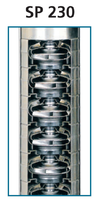 Wortex RVS 304 bron pomp 6", RVS waaiers en diffusors, type SP 230-24, motor P2: 37,0 kW 230/400 VAC, 50 Hz, persaansluiting 3" BSP bi.dr., kabellengte 1,5 mtr., excl. schakelkast en thermische beveiliging